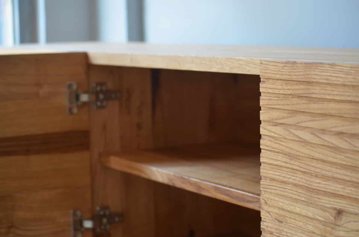 Fırınlanmış kestane ağacından üretilen 63 cm yüksekliğinde 200 cm genişliğinde 40 cm derinliğinde 3 bölmeli doğal renkte televizyon ünitesi. Çıkarılabilir orta raf. 20 cm ayak yüksekliği. Stoperli kapak menteşeleri.