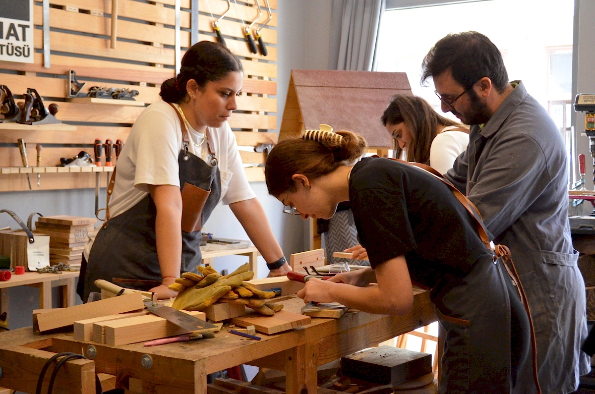 Danışman eşliğinde marangoz tezgahı ve el aletlerini kullanmayı, ahşap birleşim yöntemlerini uygulamalı olarak öğrenin. Ekip arkadaşlarınızla birlikte bu süreci keyifli bir üretim etkinliğine dönüştürün! 4-10 kişilik takımlar halinde çalıştığımız kurumsal atölye etkinliğinde ekip arkadaşlarımızla birlikte kendi ürünümüzü üretiyoruz.
