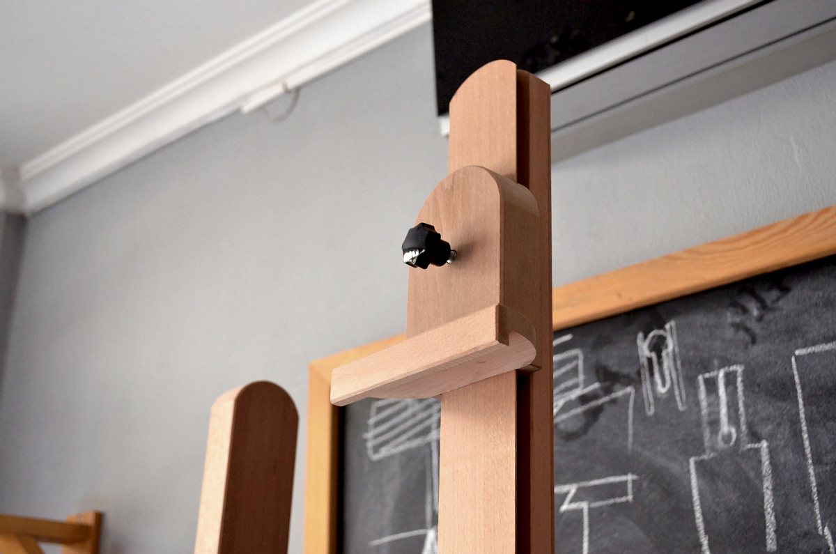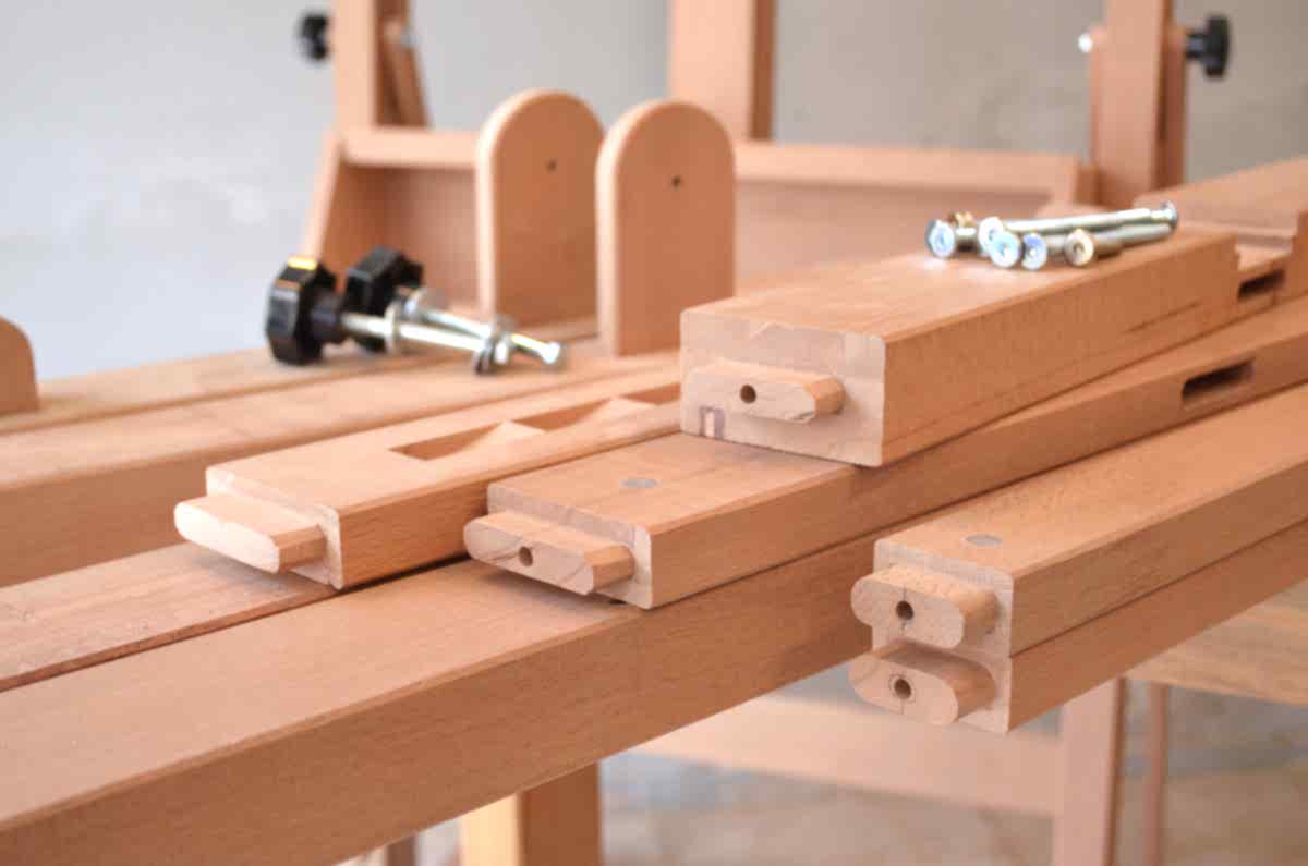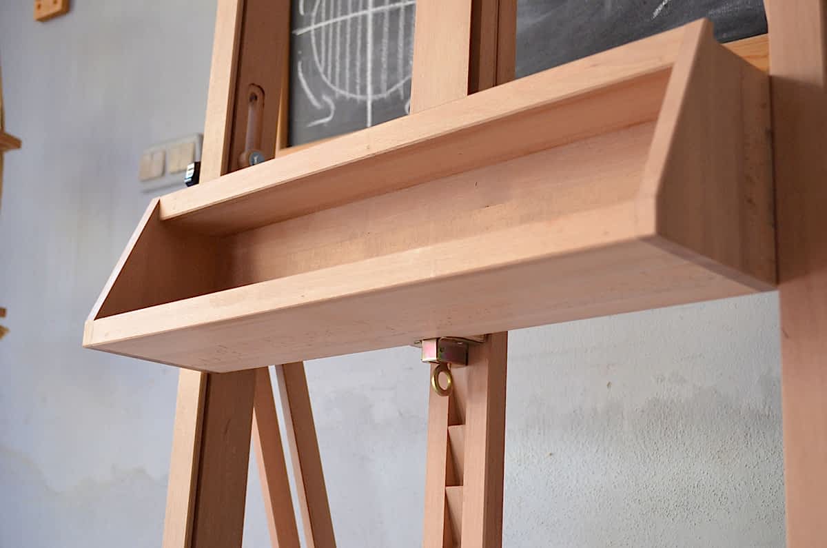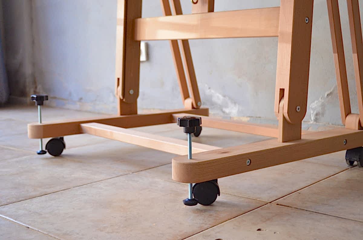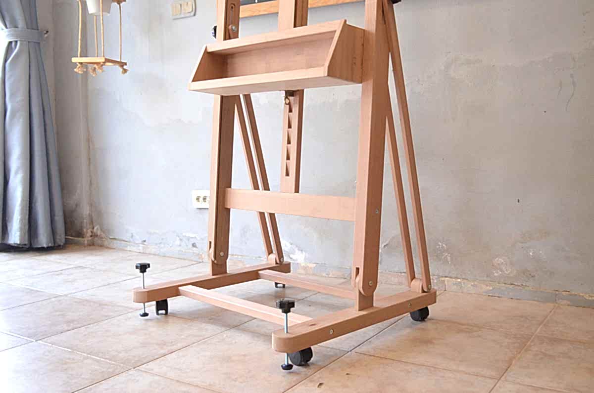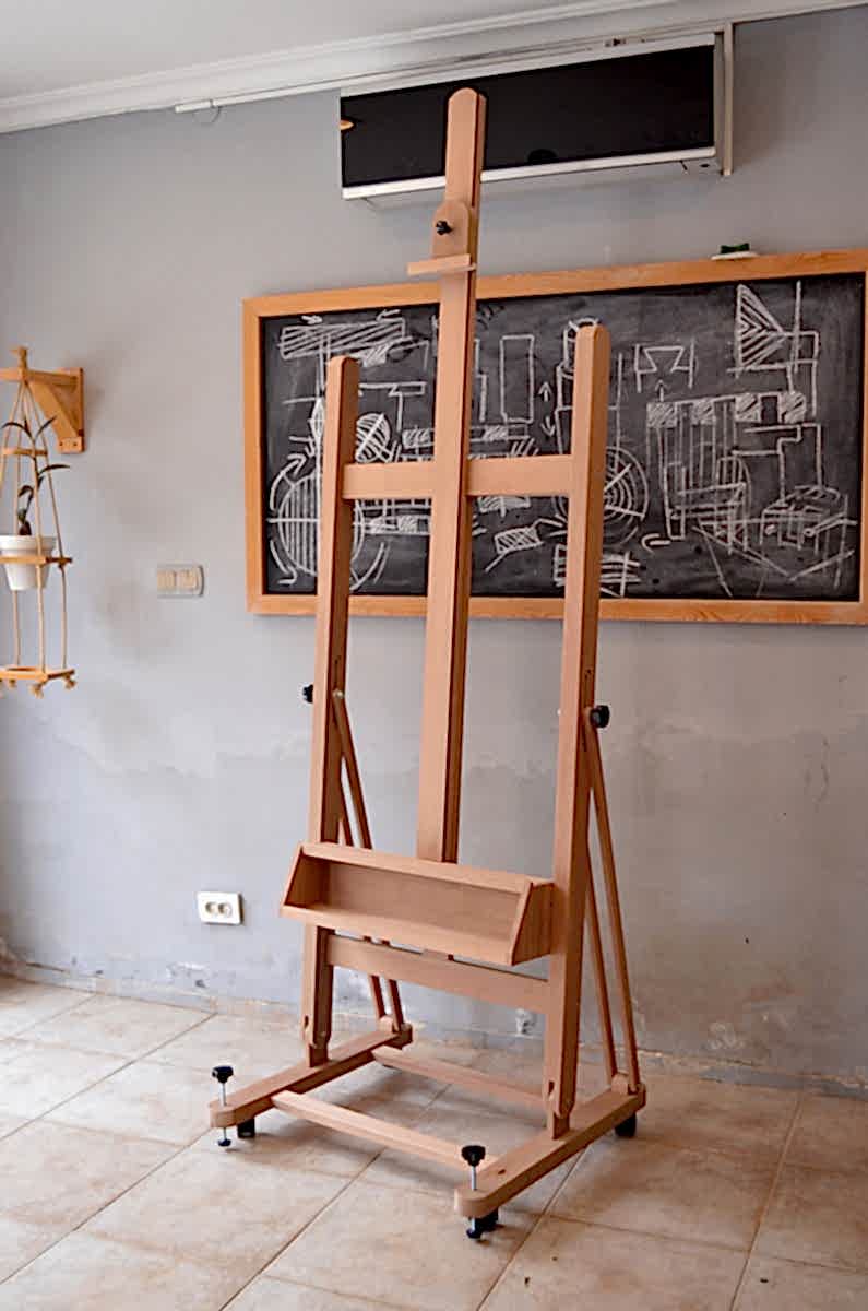 Fırınlanmış kayın ağacından özel olarak üretilen 73 cm genişliğinde 227 cm yüksekliğinde 80 cm derinliğinde tekerlekli profesyonel stüdyo şövale. 65 cm tabla yükseklik ayarı. 80-110 derece arası ayarlanabilir eğim. Sabit ayarda 150 cm, asansörlü sistemde 240 cm tuval yüksekliği kapasitesi. 7 cm tuval kalınlığı kapasitesi. Kolay monte edilebilen özel cıvatalı demonte diş geçme tasarım. İki kademeli asansörlü sistemde yükseklik ayarlama ve hızlı sabitleme için özel olarak geliştirilmiş sabitleme sistemi. Kauçuk zemin sabitleme.